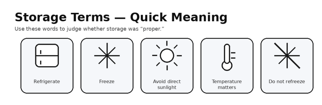 ✅보관방법 | Storage instructions | Temperature/light guidance | Use these terms to decide what’s “properly stored.”